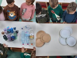 Είπαμε στους γονείς για το ποια πλαστικά μειώσαμε τη χρήση τους στο σχολείο μας, όπως τα πλαστικά πιάτα και χρησιμοποιούμε