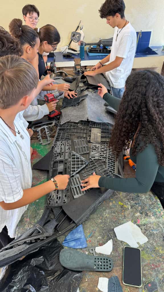 Students take part in a workshop with the artist Xico Gaivota and transform plastic in art